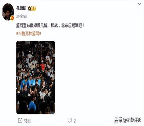 篮球记者贾磊发文点评:曾凡博被篮网裁掉,这并不是一个意外的结果。以NBA中国赛篮网主帅的用人来看,这是大家能预想到的。 至少小曾努力过了,不会有遗憾。