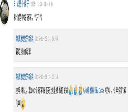在体育播报这篇首尔FC主帅的赛后发言文章的评论区,有某队球迷回复(上图)道:“我们是中超冠军,气不气?”