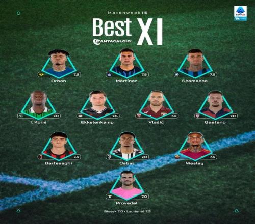 北京时间12月16日,意甲官方公布了联赛第15轮的最佳阵容,劳塔罗、巴尔泰萨吉、卡瓦尔入选。
