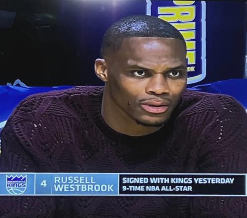 你好,18号威少。威少现场观战了新东家国王117-116险胜老东家湖人的比赛,转播方介绍他的屏幕打出9届全明星给予尊重。值得一提的是,据名记Scotto报道,威少与国王签下的只是一份无