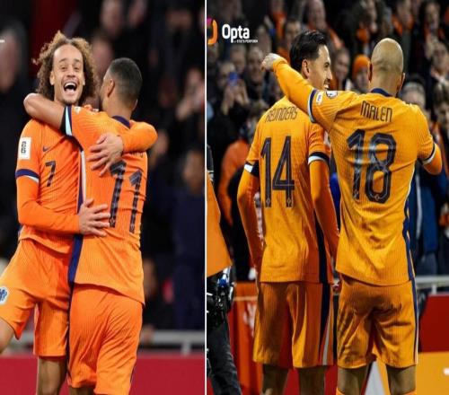 荷兰队史首次,四名来自英超的球员单场比赛分别进球